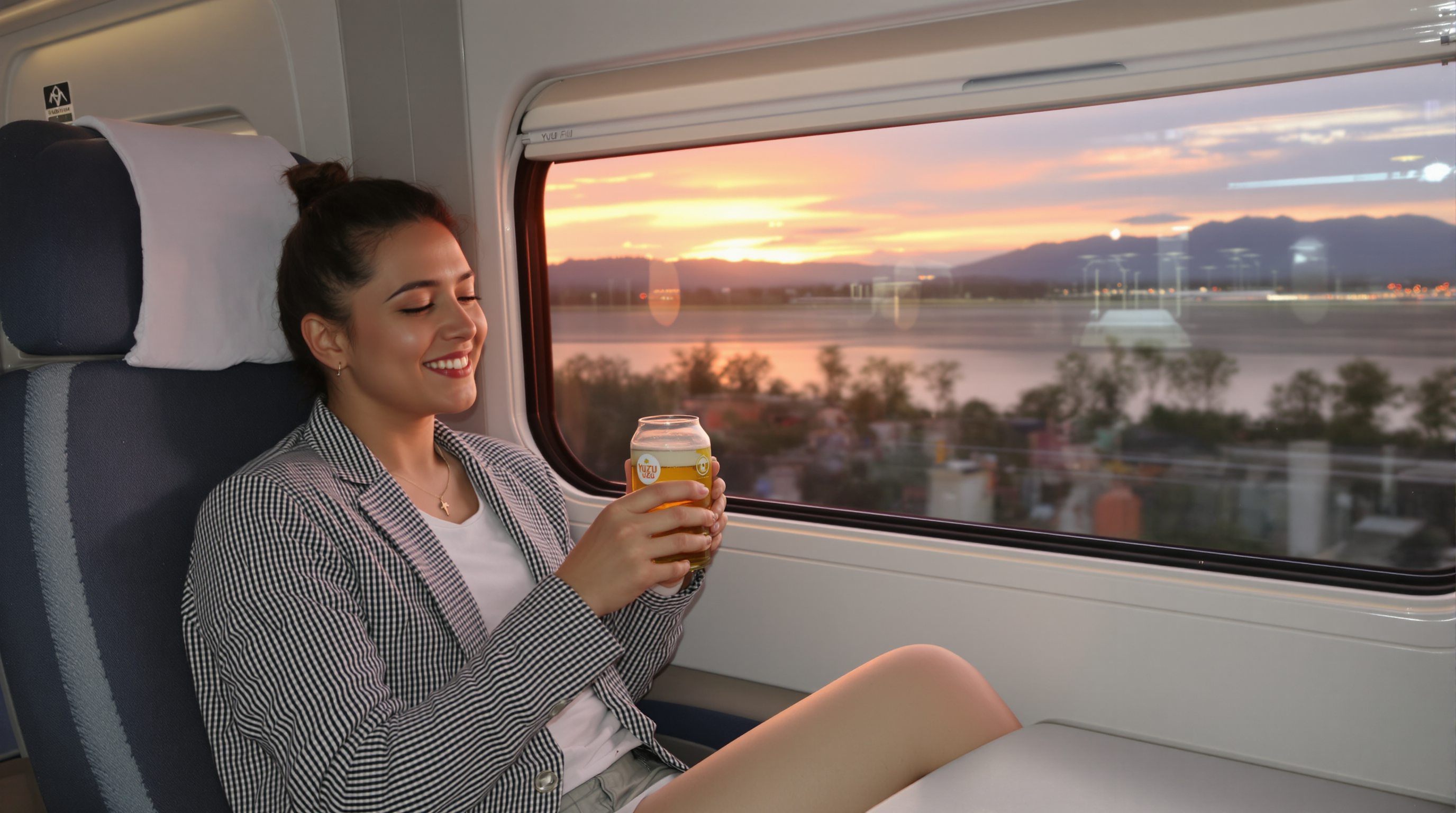 유자 맥주 한 캔 사서 기차 안에서 마시면