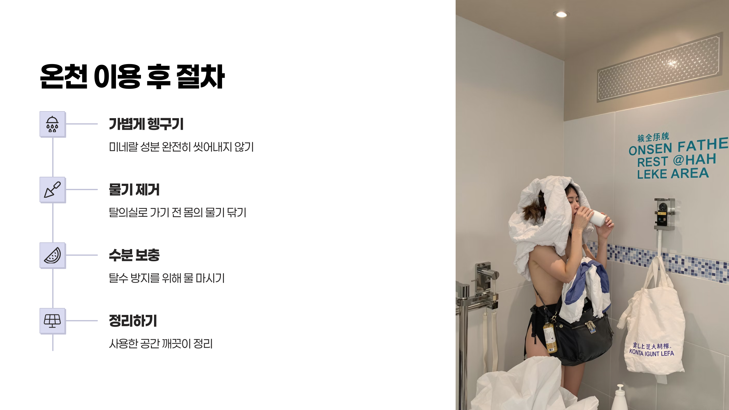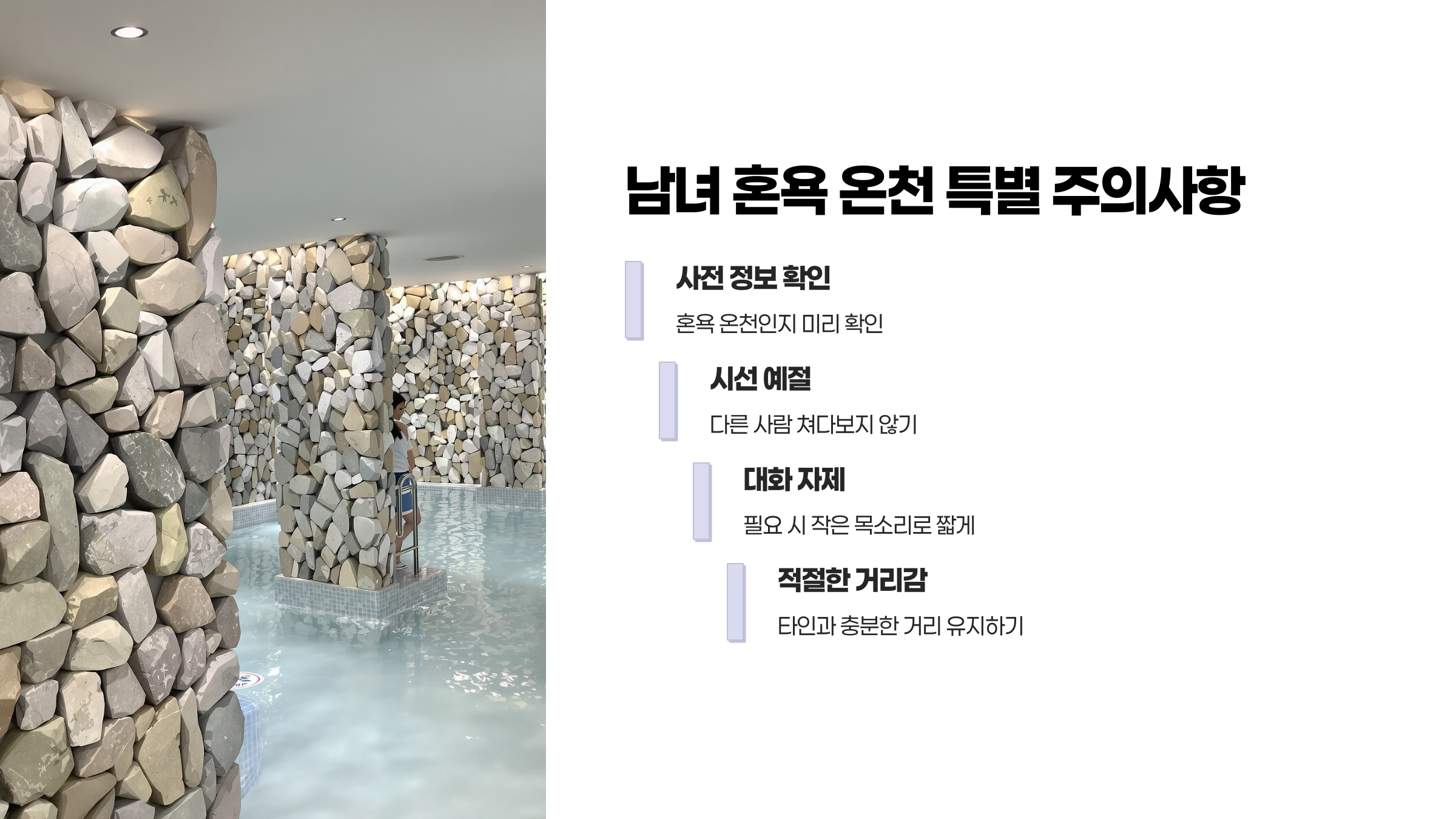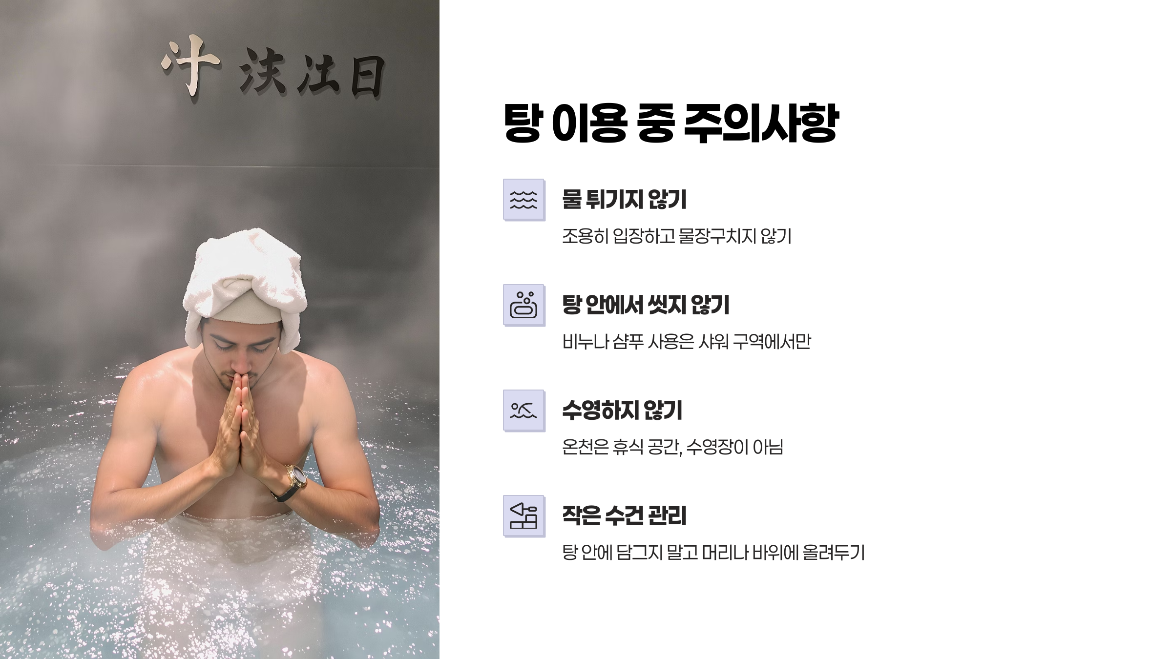 다른 사람에게도 불편하지 않아야 그 온천이 진짜 좋았던 기억으로 남는다.