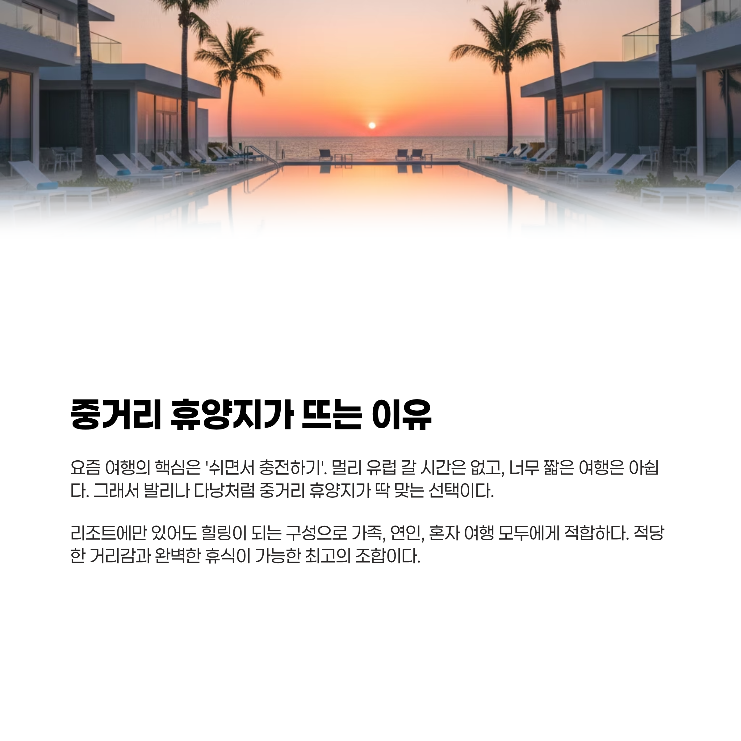 그래서 발리나 다낭처럼 중거리 휴양지가 딱이라는 것!