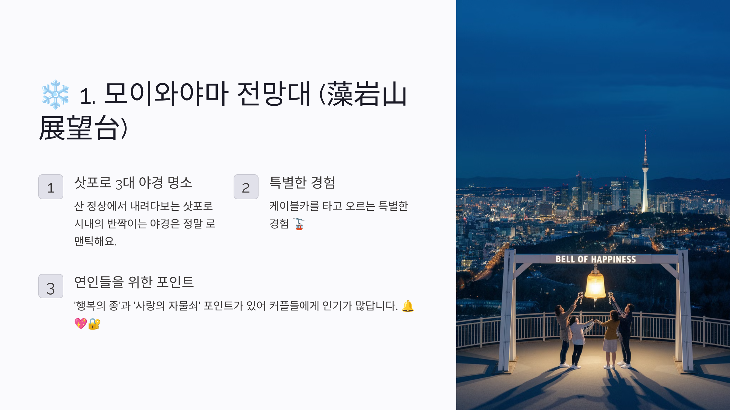 ## ❄️ 1. 모이와야마 전망대 (藻岩山展望台)