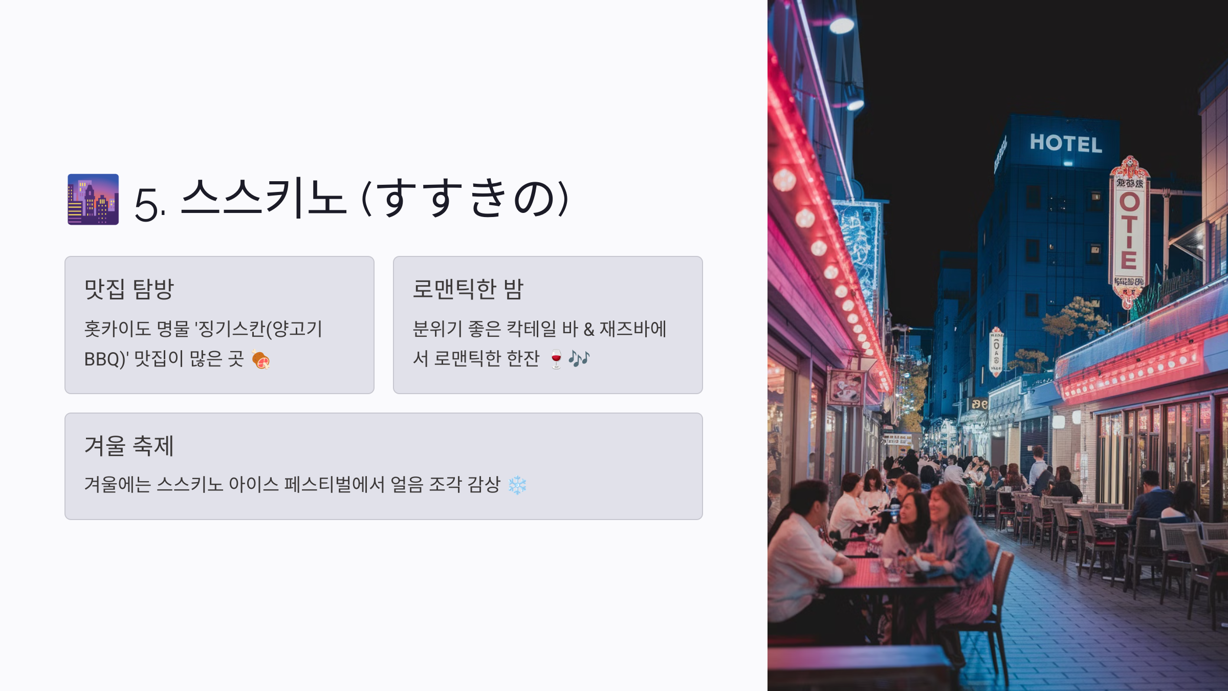 이렇게 삿포로에서 일본인들이 자주 가는 데이트 장소 TOP 5를 소개해봤어요! 💖