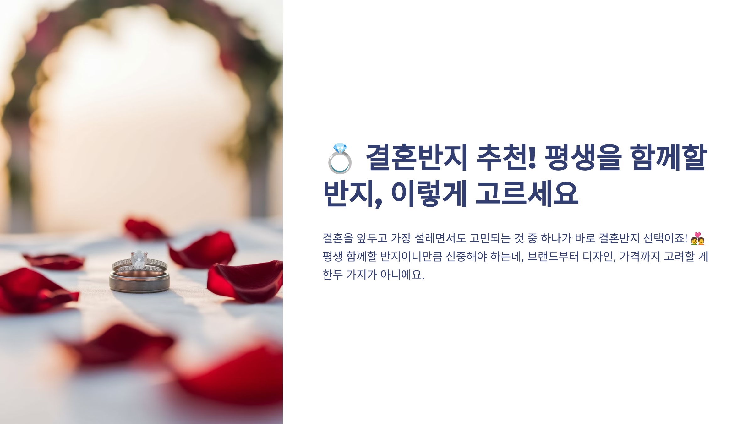 결혼을 앞두고 가장 설레면서도 고민되는 것 중 하나가 바로 결혼반지 선택이죠! 💑