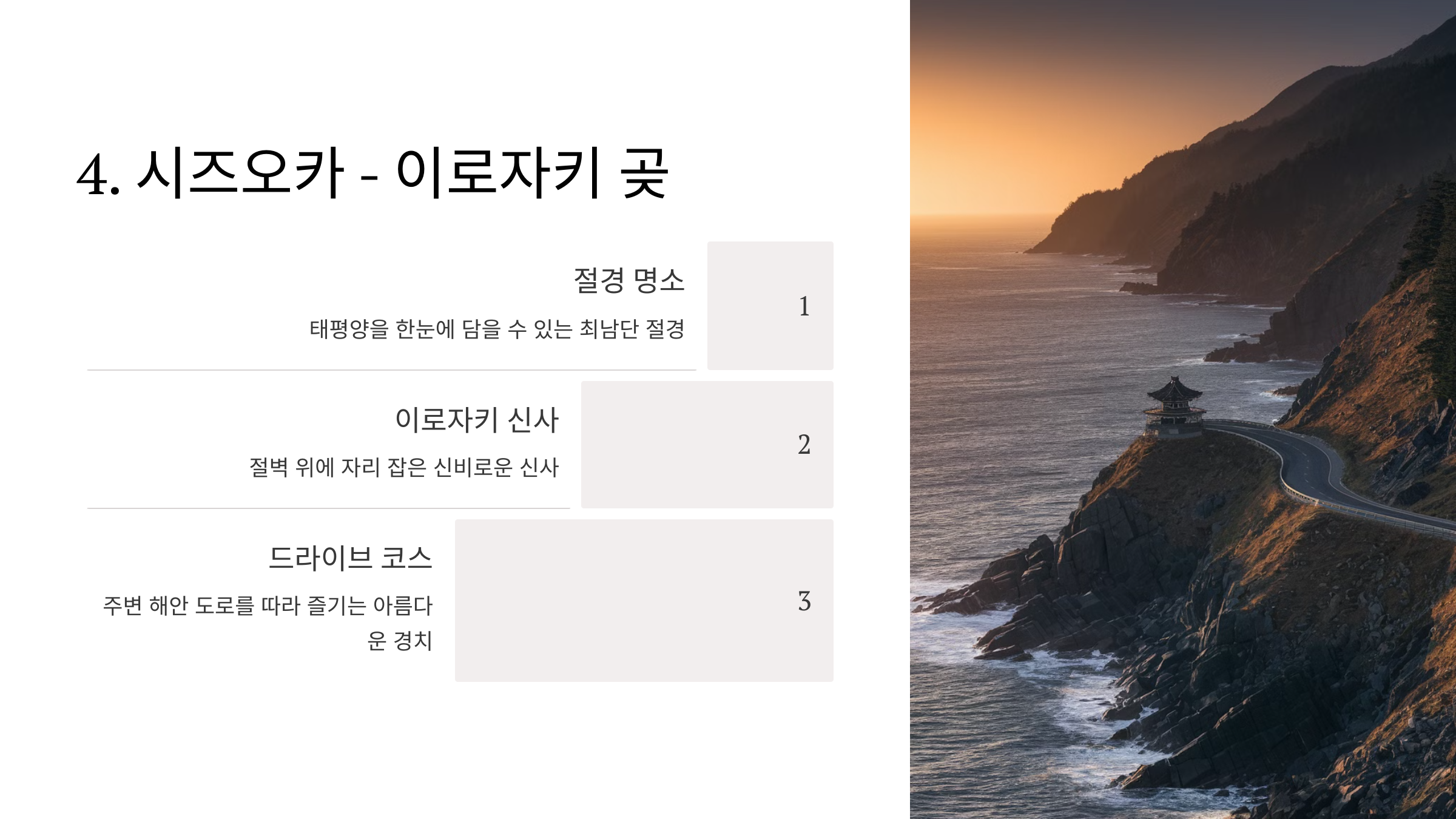 🔹 일본 해안 드라이브 코스 추천해 주세요!