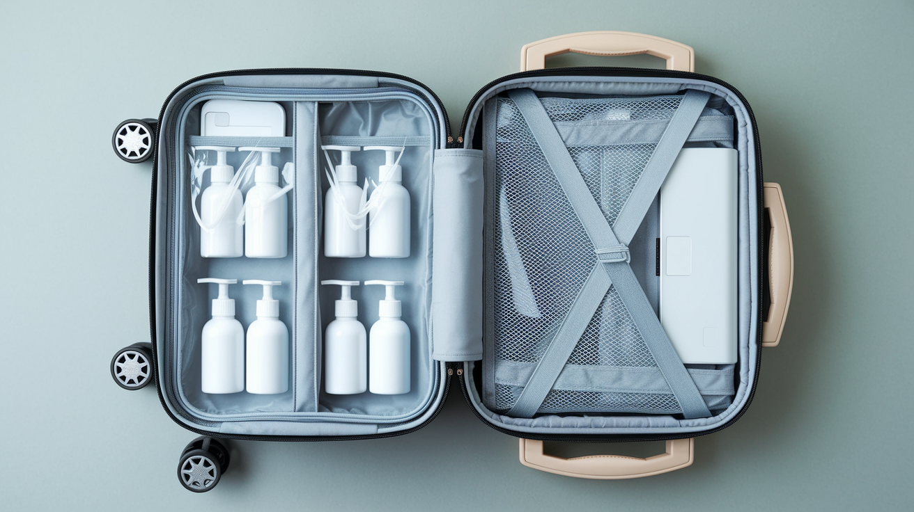 즉, 화장품, 향수, 헤어스프레이 같은 것도 작은 용기에 나눠 담아야 해요.